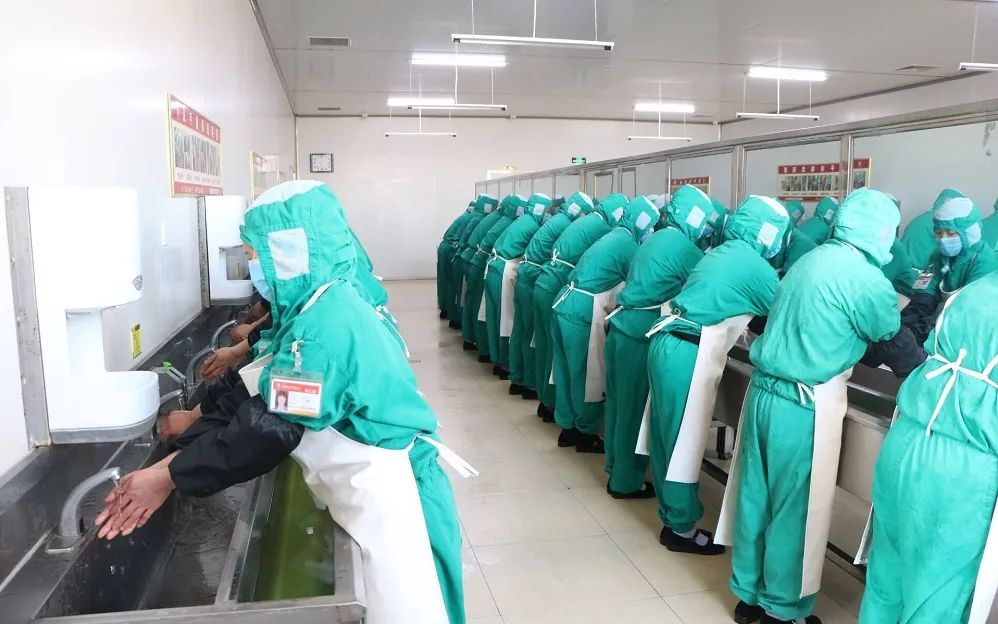 同時,我們用***嚴格的工作標準,***嚴謹?shù)墓に嚵鞒?,為消費者提供放心、安全、健康的食品。全副武裝、30s清晰消毒、2重風淋除塵是進入車間的必須程序。
