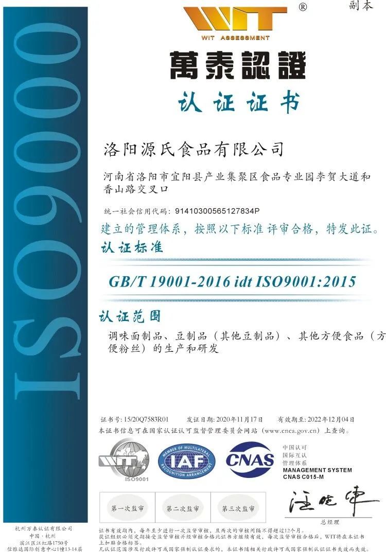 為了認真貫徹落實食品安全法,切實保障消費者的食品安全,我司認真開展食品質量管理控制工作。迄今為止,已取得ISO9000質量管理體系認證,ISO22000食品安全管理體系認證,HACCP危害分析與關鍵控制點管理體系認證(業(yè)內稱之為“控制食品安全和風味品質的***好***有效的管理體系”)。